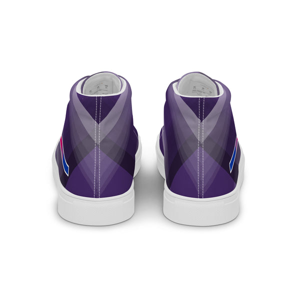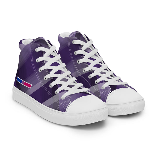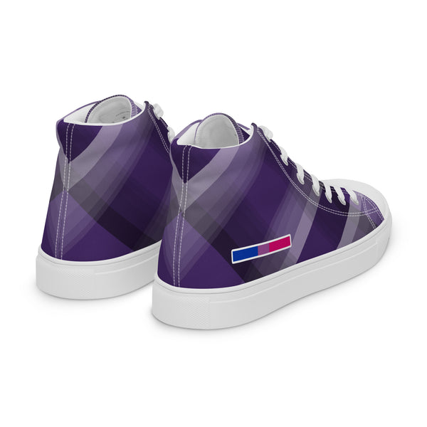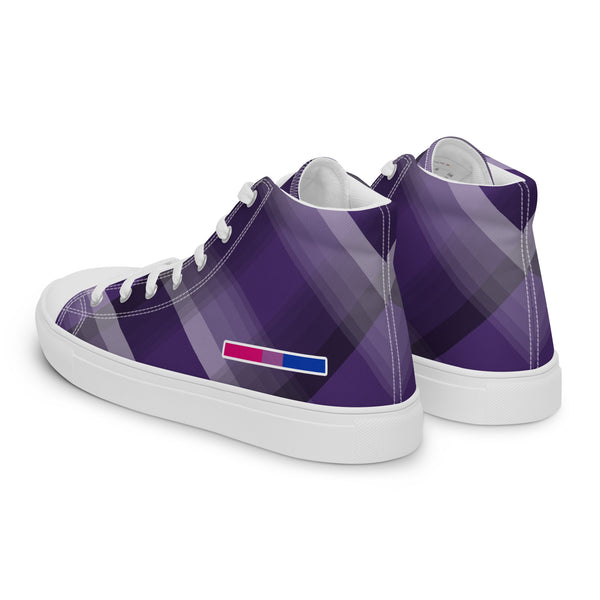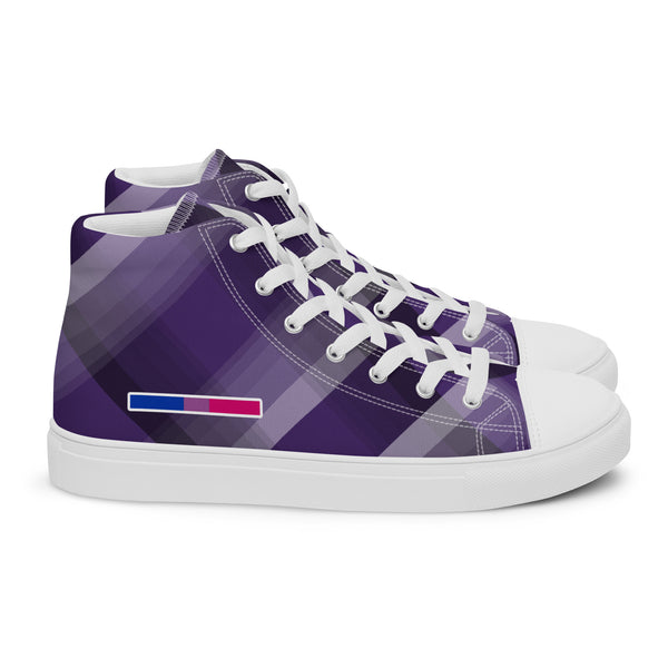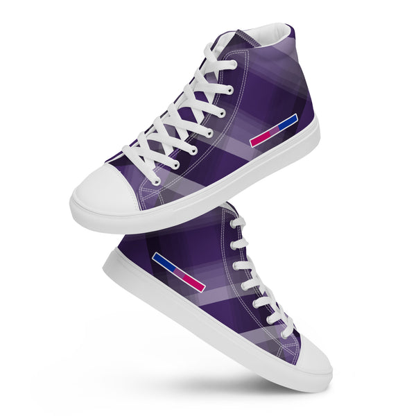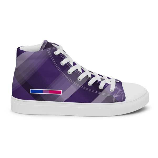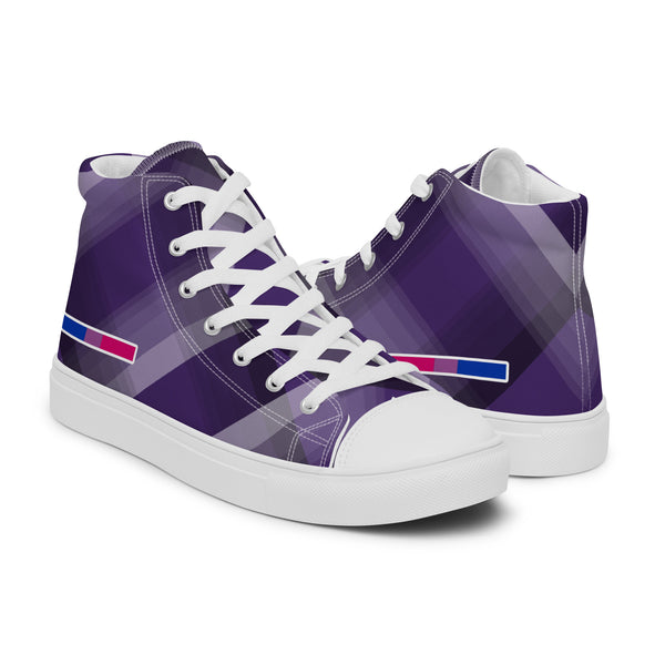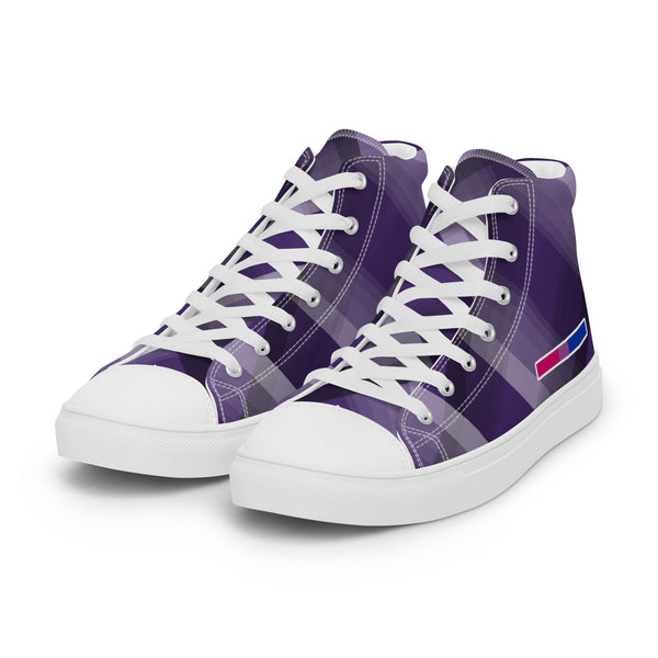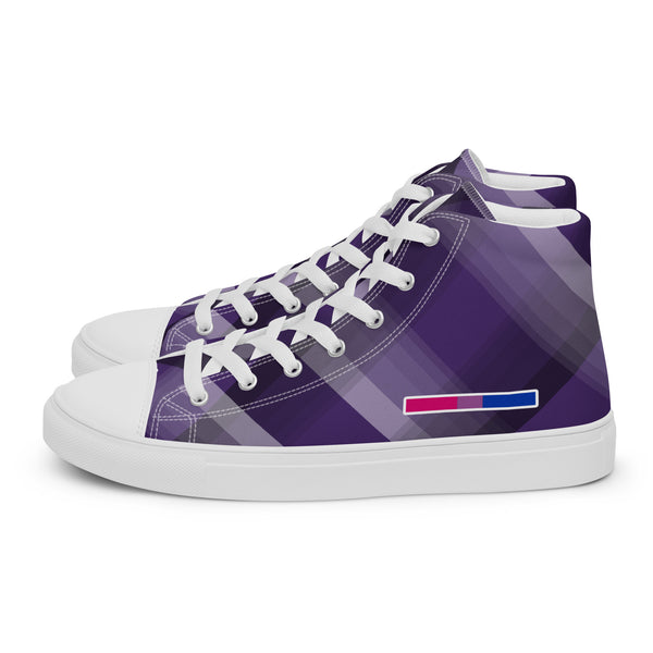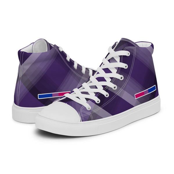 Step into bold expression with these purple high tops featuring a striking plaid pattern and bisexual pride flag accents. Designed for those who value individuality and visibility, these sneakers combine standout style with everyday comfort. Whether you're dressing up or keeping it casual, these shoes make a confident statement with every step.