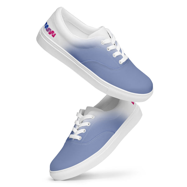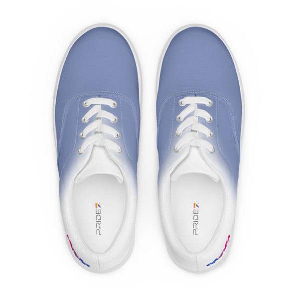Walk with quiet confidence in these minimalist lace-up shoes featuring a smooth blue-to-white fade and subtle bisexual pride accents. Designed for everyday comfort, these shoes combine a clean aesthetic with a powerful message of identity. Perfect for casual outfits, they offer a stylish way to express who you are without saying a word.