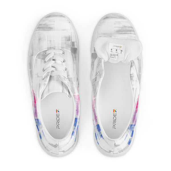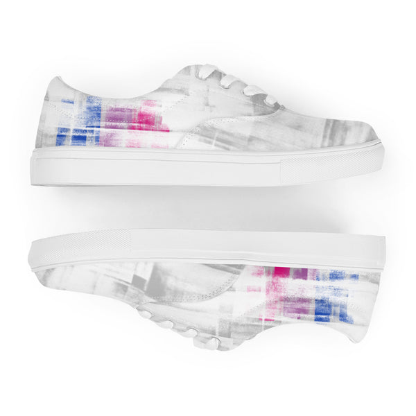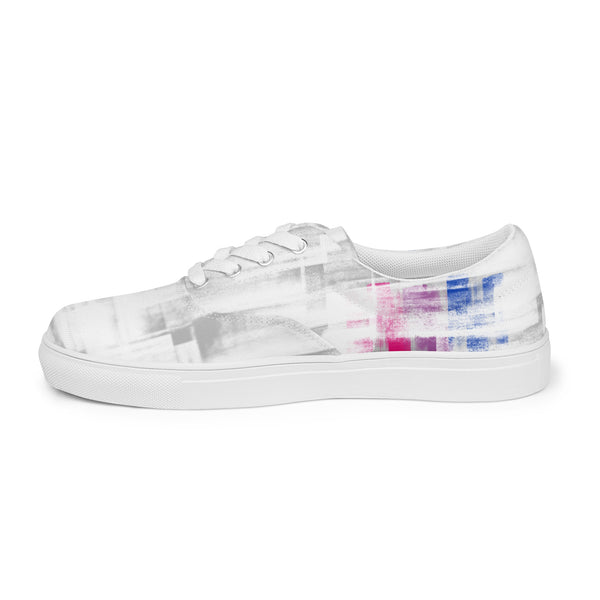 Show your pride through modern streetwear with these white and silver lace-up shoes featuring bold bisexual flag detail. Designed for casual wear and built for comfort, these shoes let you express your identity with style and ease. Make every step count in footwear that speaks for itself.