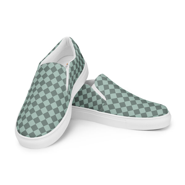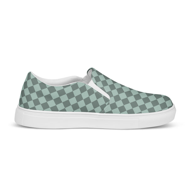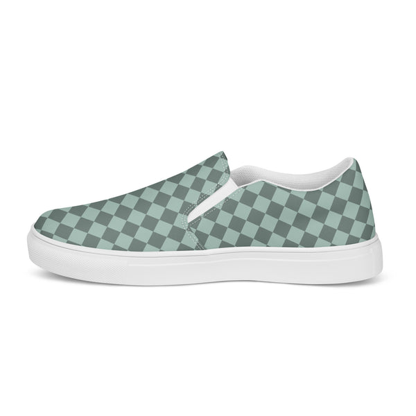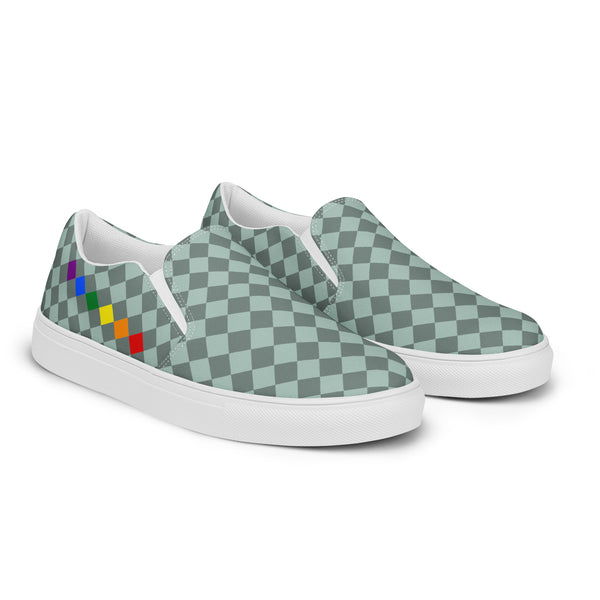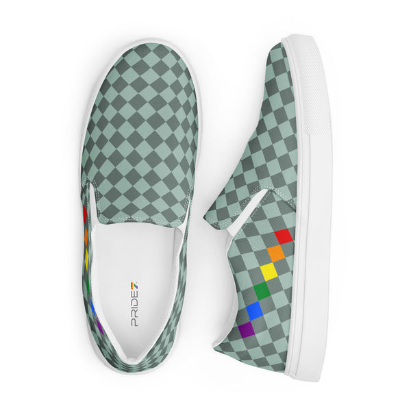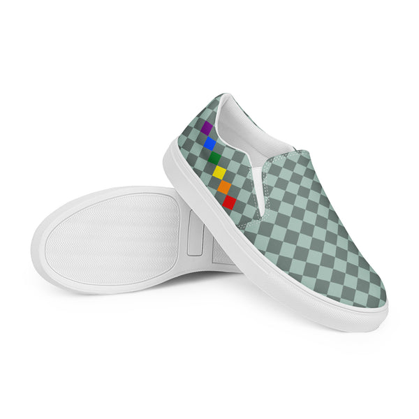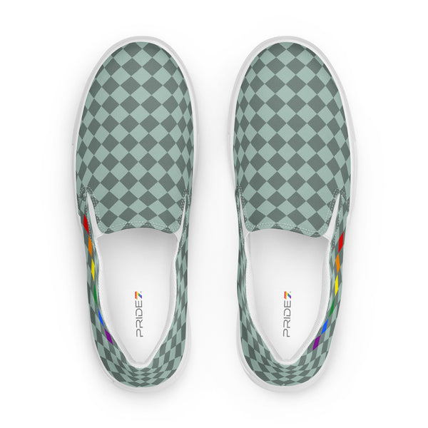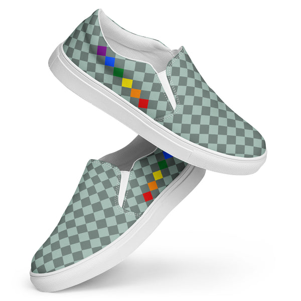 Show your pride in style with these Checkered Gay Pride Dark Green Slip-On Shoes! The subtle pride flag accent on the sides adds a touch of personality while keeping you comfortable. Perfect for any casual occasion, these shoes are a fun and playful addition to any outfit.