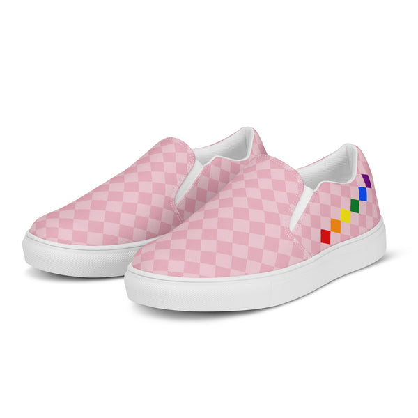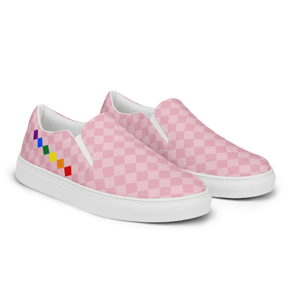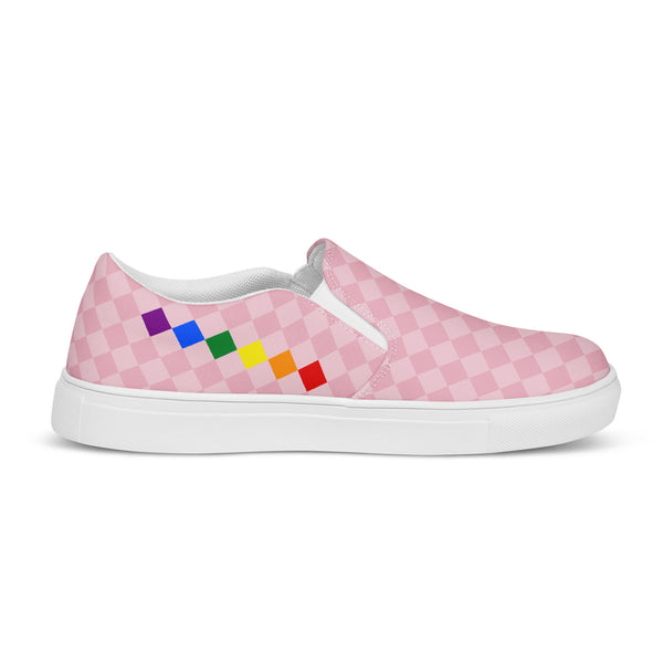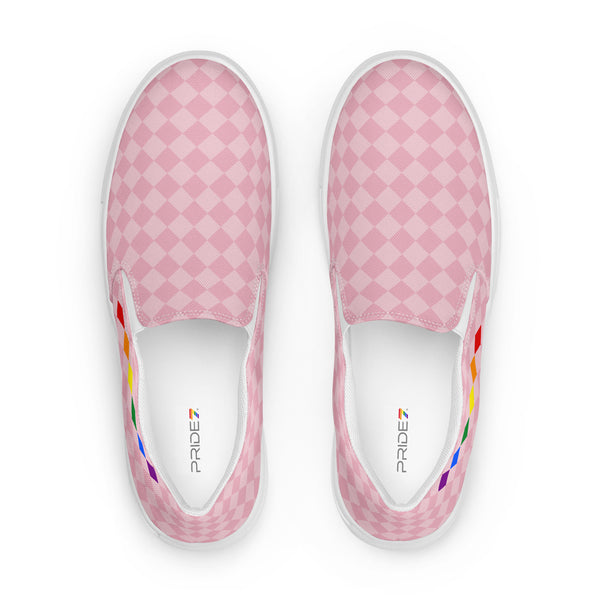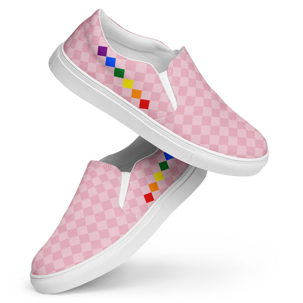 Step into style and show your pride with our Checkered Gay Pride Pink Slip-On Shoes! Featuring a pink checkerboard design, these shoes will make a statement while providing comfort and support. Perfect for everyday wear or special occasions, these shoes are a must-have for anyone looking to express their individuality and celebrate diversity. Walk with confidence and spread love in our Checkered Gay Pride Pink Slip-On Shoes.
