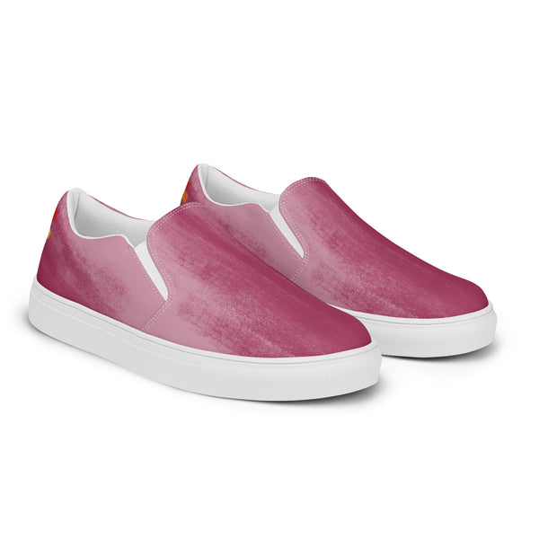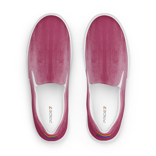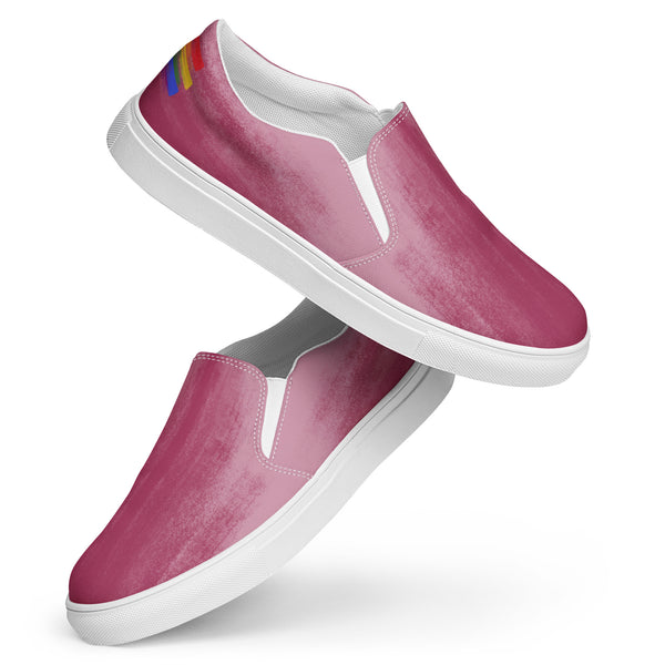 These mauve slip-on shoes feature soft, subtle streaks paired with rainbow flag accents on the heels for a modern, low-key expression of LGBTQ+ pride. Blending everyday comfort with quiet individuality, they’re ideal for those who want to show support while keeping it stylish and versatile. A refined way to step out with meaning.