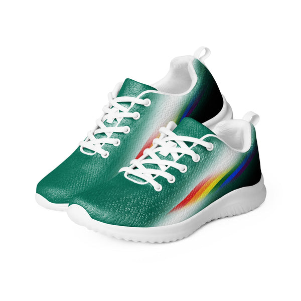 Step out in style with our Niagara Green Gay Pride Sneakers, designed for those who celebrate pride with confidence. Featuring a sleek white toe, dark heel, and subtle rainbow flag details on the sides, these shoes offer a modern, low-key way to represent the LGBTQ+ community. Whether you're marching at Pride or just adding a pop of meaning to your daily fit, these sneakers blend comfort, fashion, and a statement of identity. Be proud, be visible — walk with purpose.
