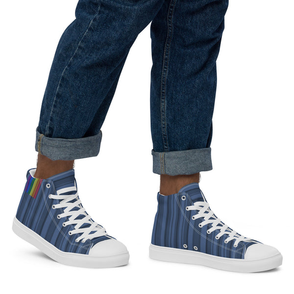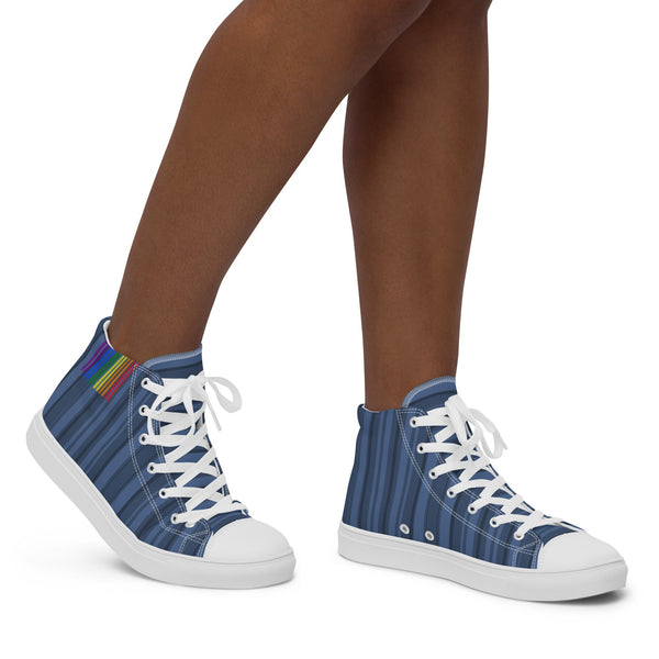 Blue Striped High Tops with Subtle LGBTQ+ Pride Detail