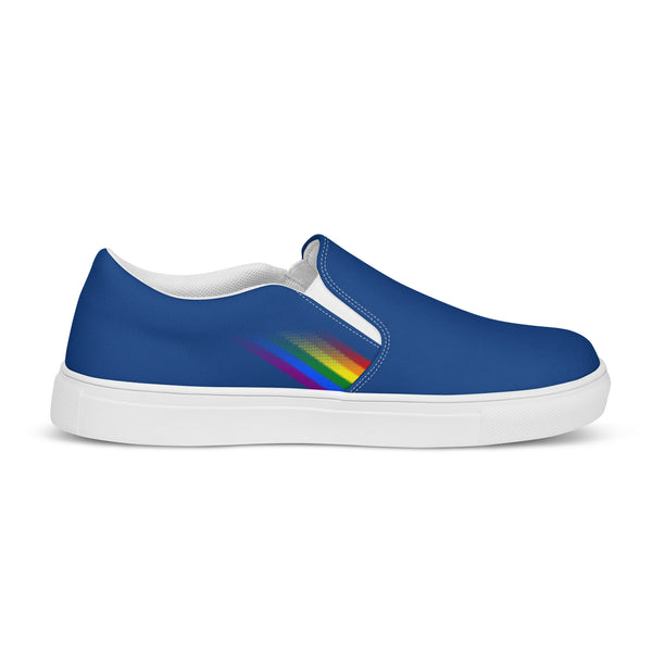 These vibrant solid blue slip-on shoes feature subtle faded rainbow pride flags, blending bold color with quiet expression. Comfortable and stylish, they offer a clean silhouette that speaks to LGBTQ+ identity and support without being loud. Perfect for daily wear, they’re a simple yet powerful way to spread love and visibility.