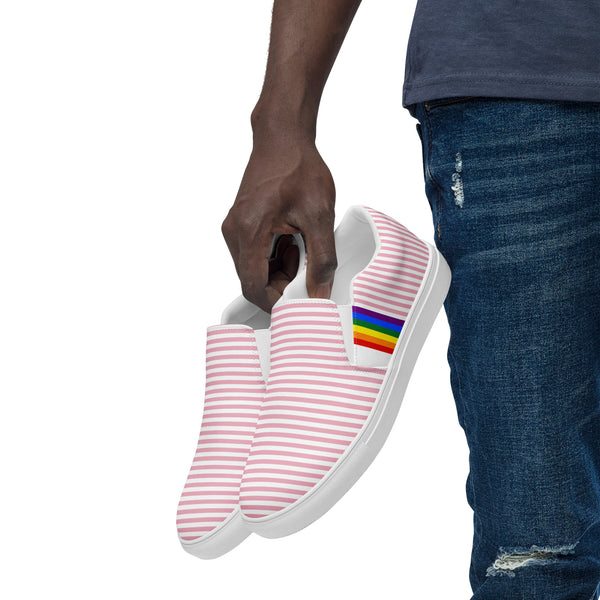 Strut with confidence in these Pink Pinstriped Gay Pride Slip-On Shoes. Designed with a playful pink and white pinstripe pattern, they bring a fun and stylish twist to your everyday look. Comfortable and bold, they’re the perfect way to express pride and personality in every step.