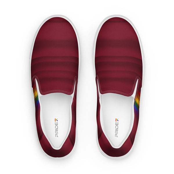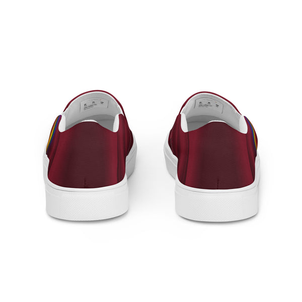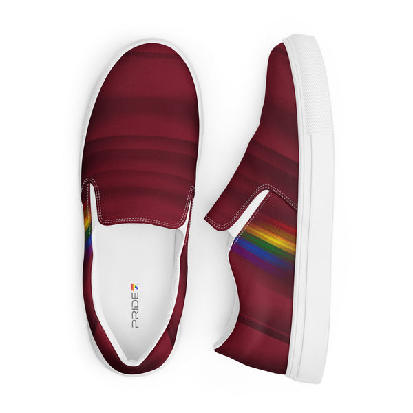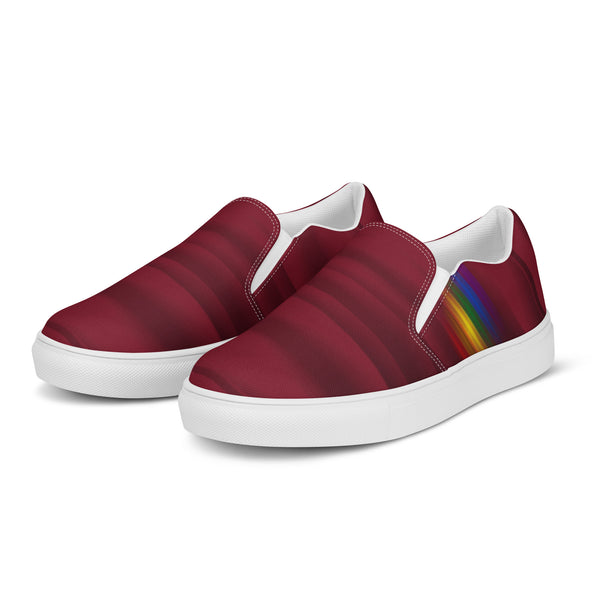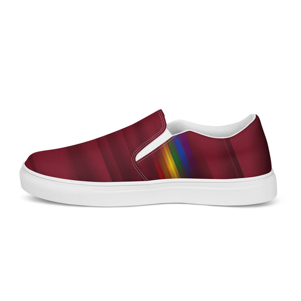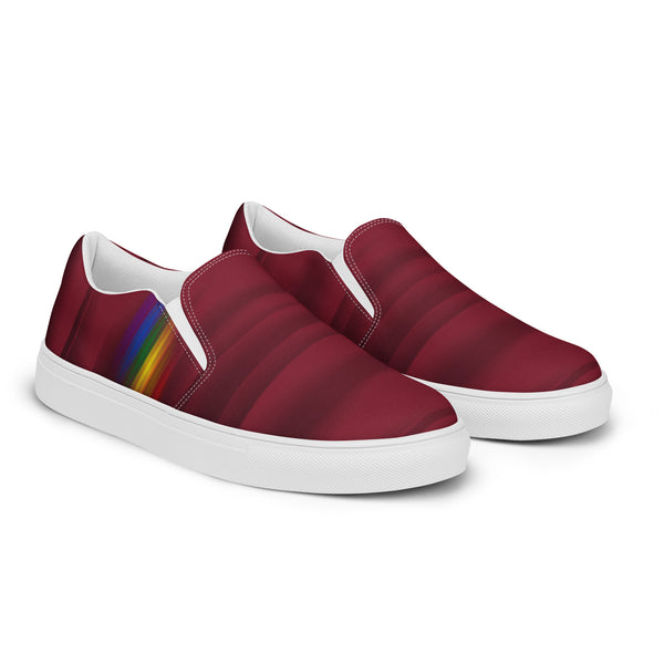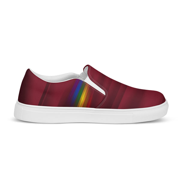 Featuring bold burgundy streaks and faded rainbow pride flag accents, these slip-on shoes offer a stylish and meaningful expression of LGBTQ+ support. Designed for all-day comfort, they combine striking color with subtle symbolism. Whether you're out for the day or making a quiet statement, these shoes celebrate inclusivity with every step.