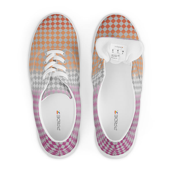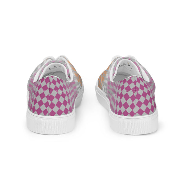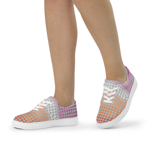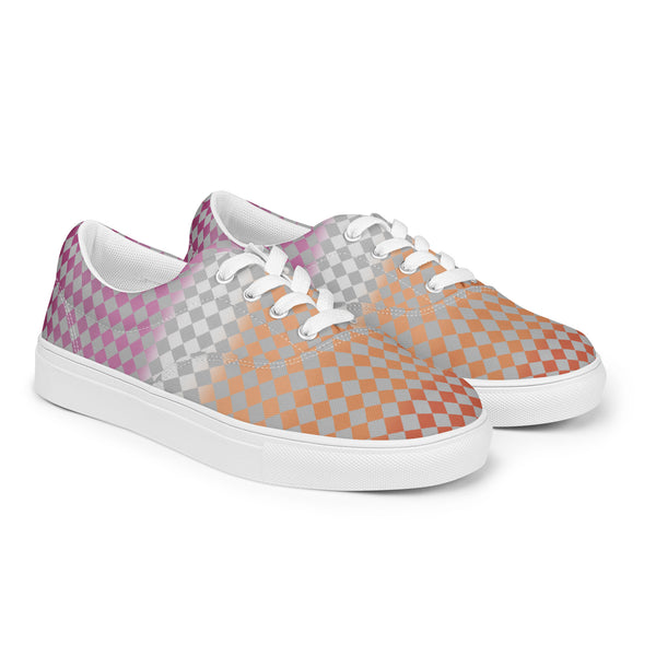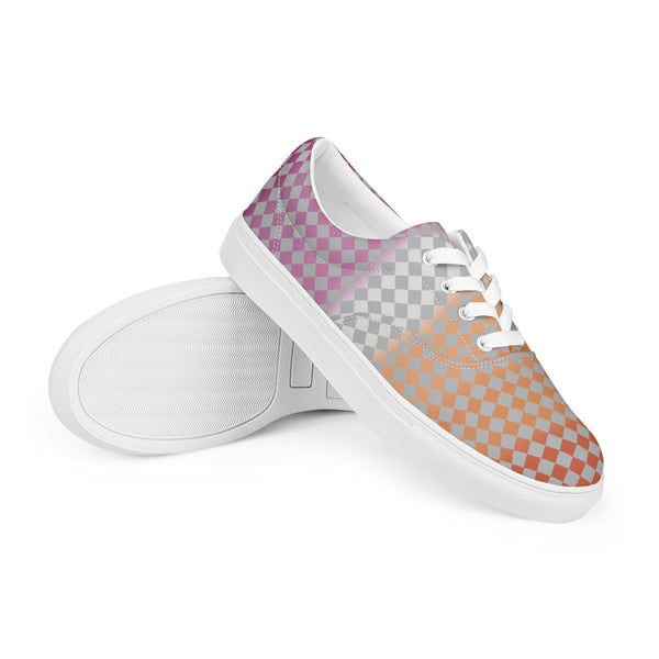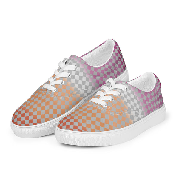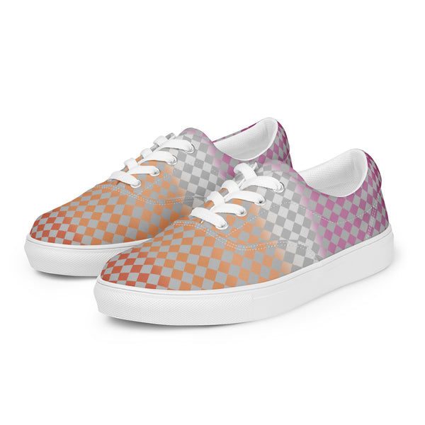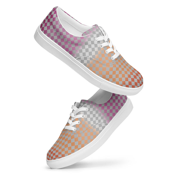 Gray Checkerboard Lesbian Pride Lace-Up Shoes