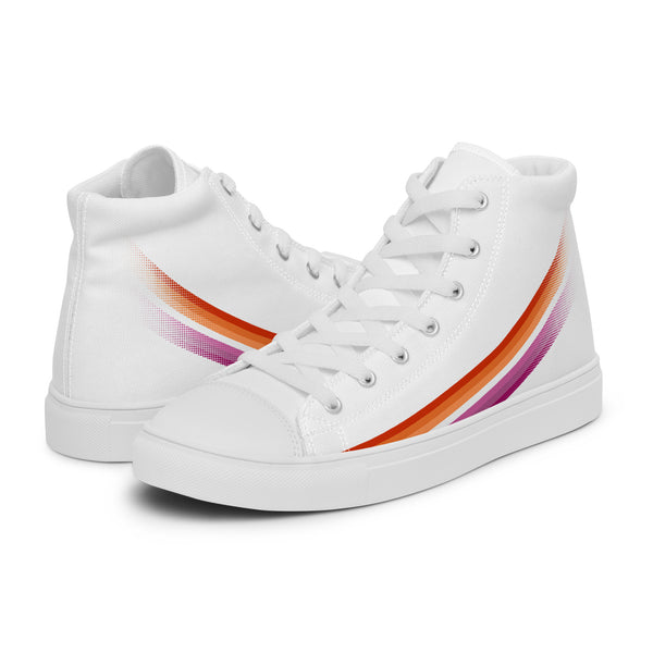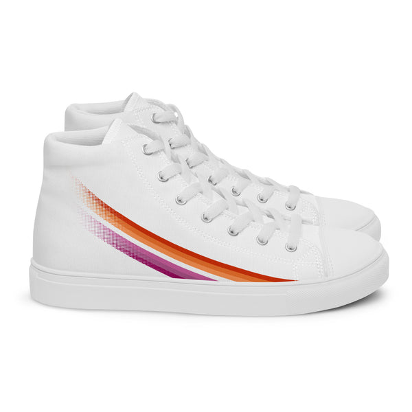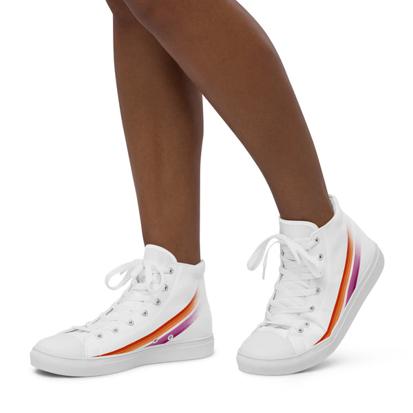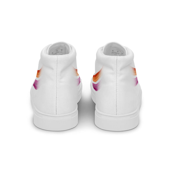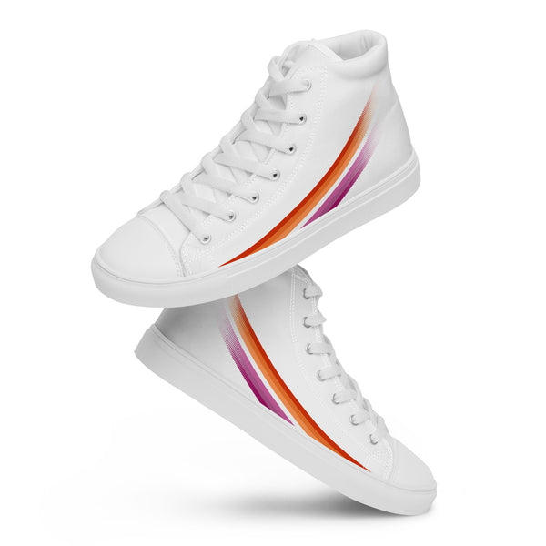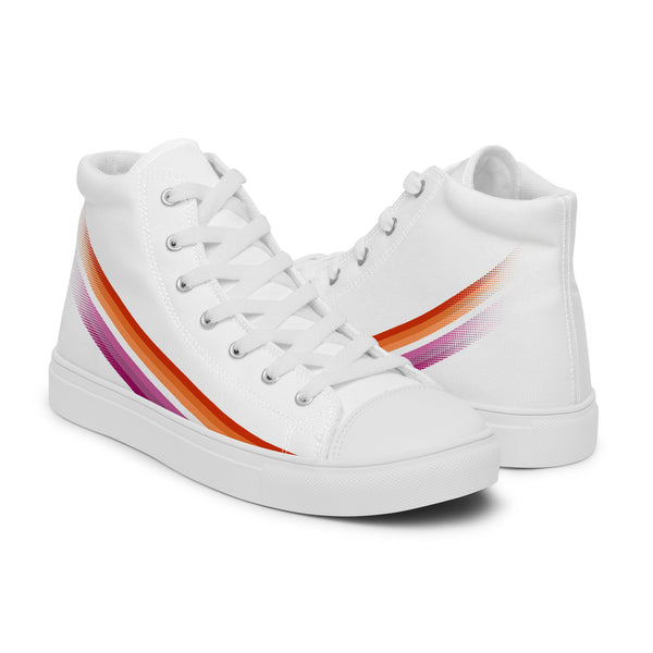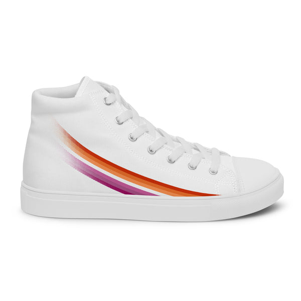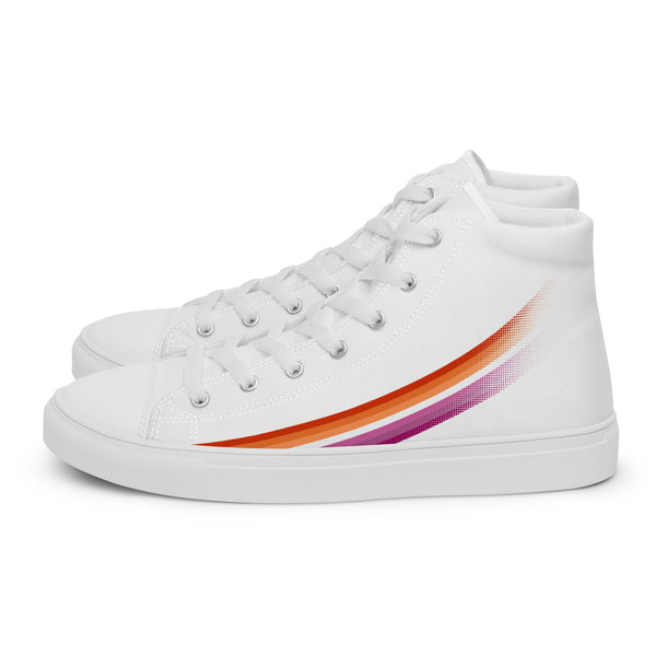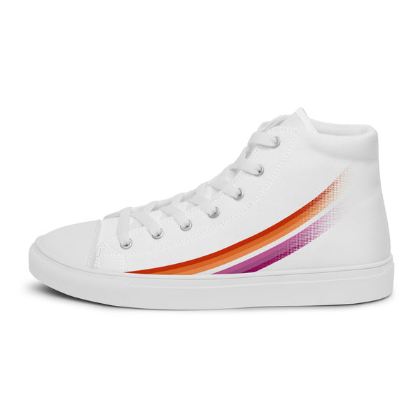 Make a bold statement with these Modern White Lesbian High Tops, featuring a striking arched pride flag for a fresh and stylish twist. Designed for comfort and individuality, these shoes are perfect for standing out from the crowd while celebrating your identity. Whether for pride events or everyday wear, they let you walk proudly and fabulously with every step.