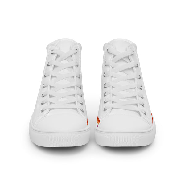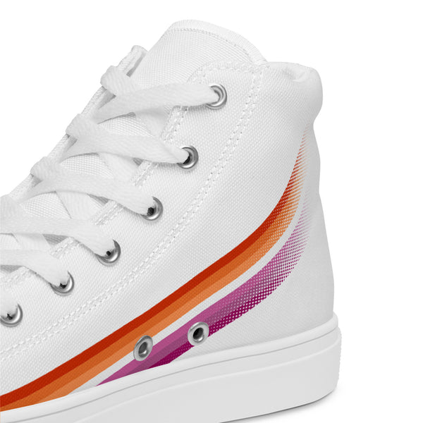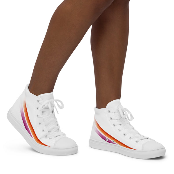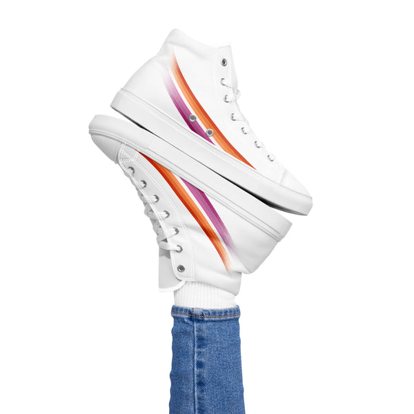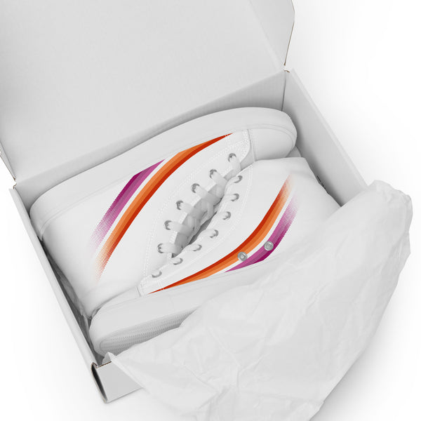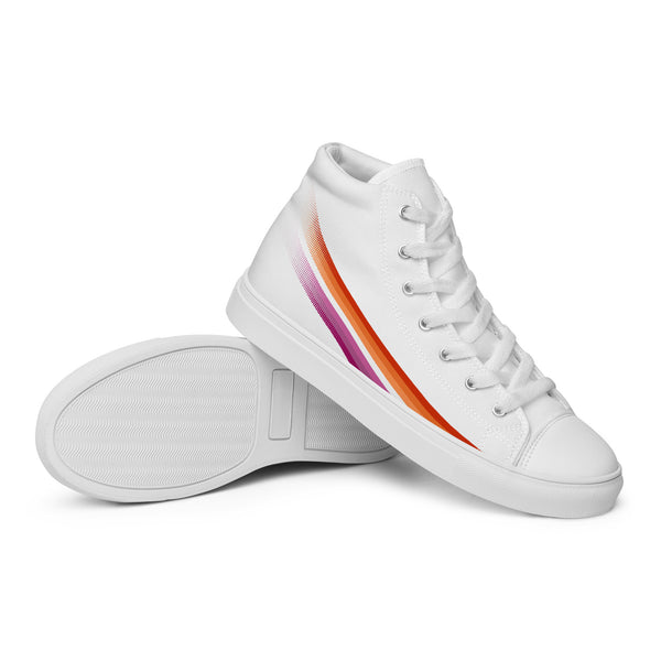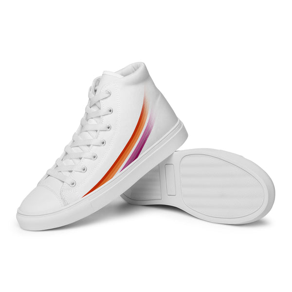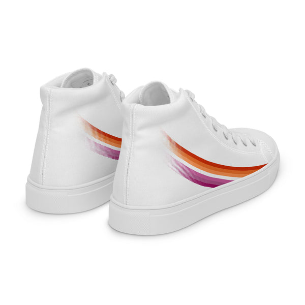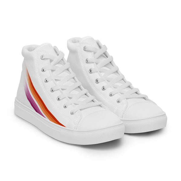 Make a bold statement with these Modern White Lesbian High Tops, featuring a striking arched pride flag for a fresh and stylish twist. Designed for comfort and individuality, these shoes are perfect for standing out from the crowd while celebrating your identity. Whether for pride events or everyday wear, they let you walk proudly and fabulously with every step.