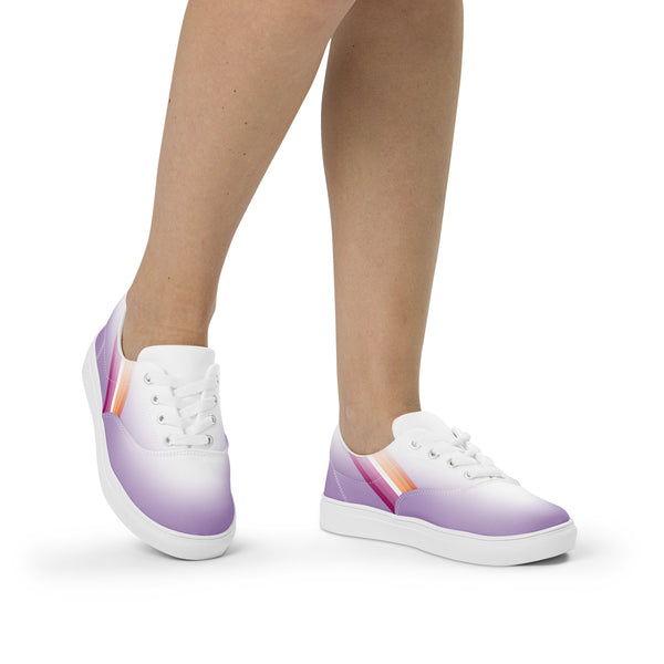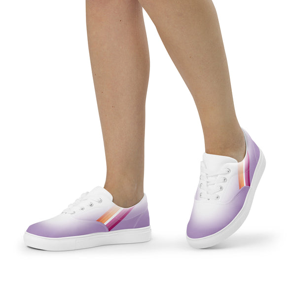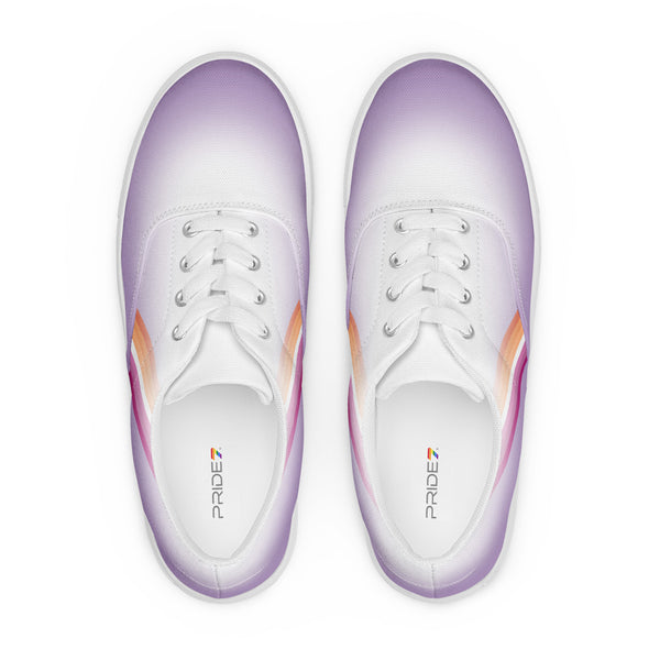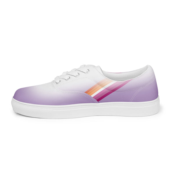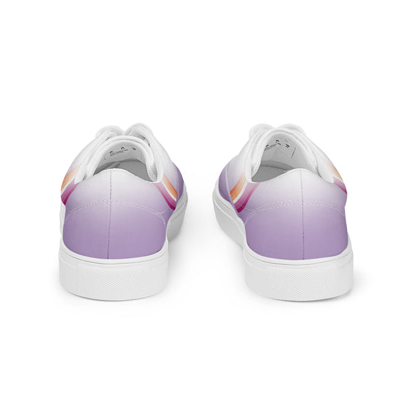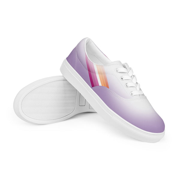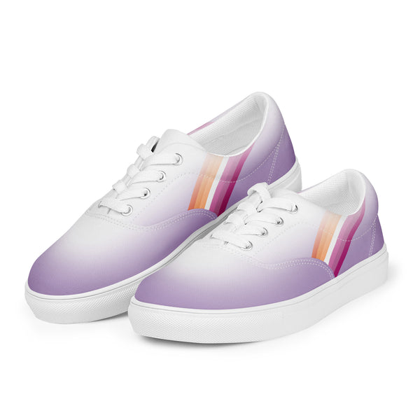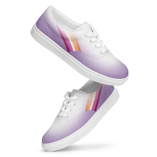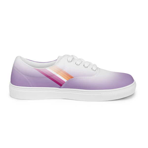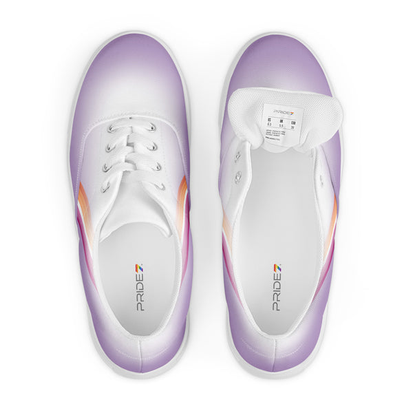 Step out in style with these Lavender Gradient Lesbian Flag Lace-Up Shoes, featuring a smooth white-to-lavender fade and subtle touches of the iconic lesbian flag. Designed for comfort and all-day wear, they’re perfect for showing pride and making a confident statement with every step.