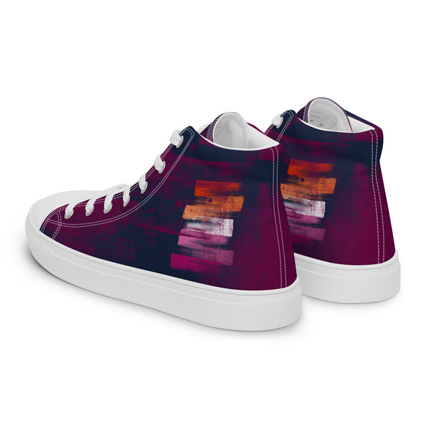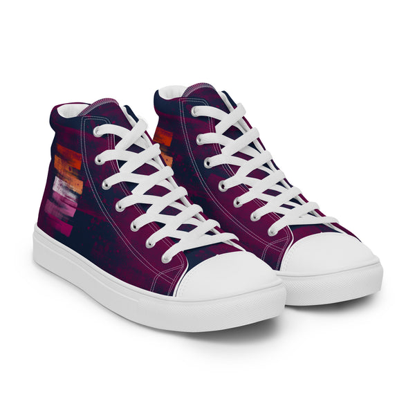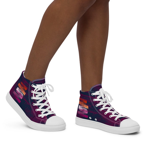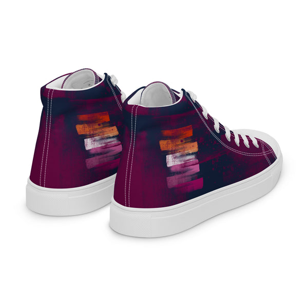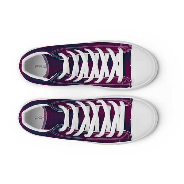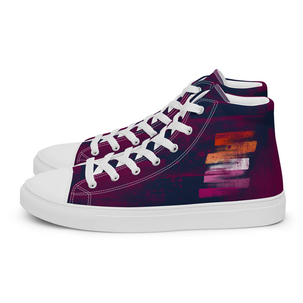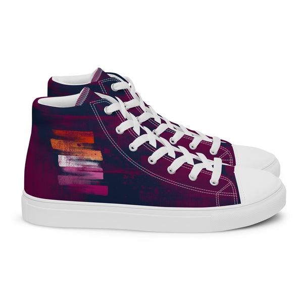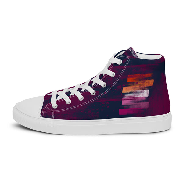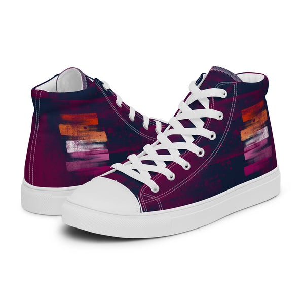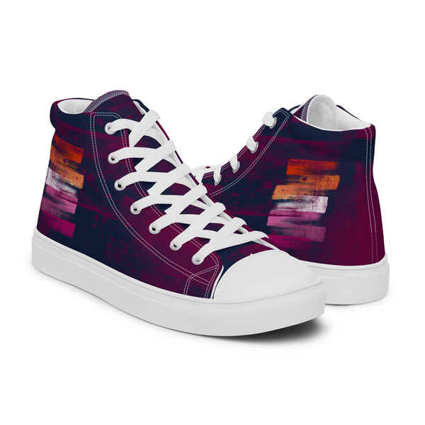Step into bold expression with these Navy Lesbian Flag High Tops, featuring striking blue and burgundy streaks that subtly reflect the lesbian pride flag. These standout shoes combine pride, comfort, and individuality — perfect for dressing up a casual day out or adding flair to your evening look. Make every step a statement of identity and style.