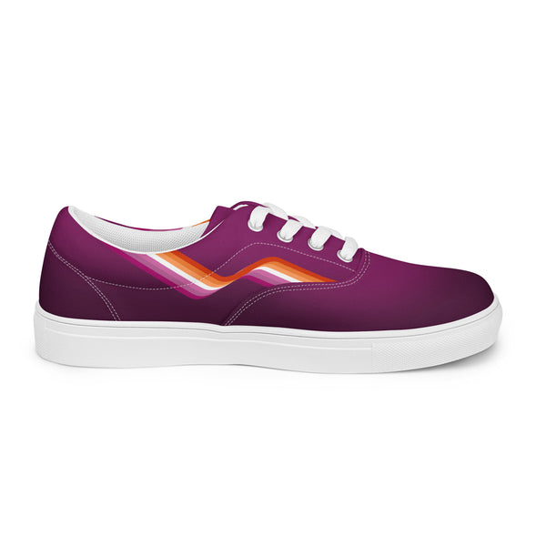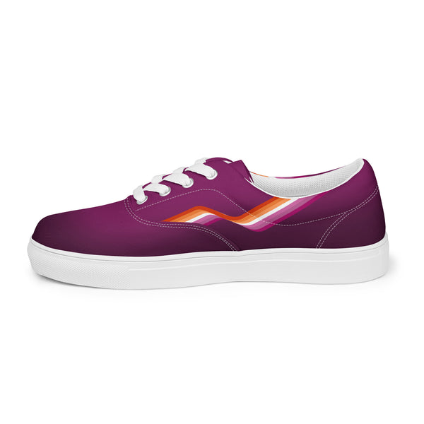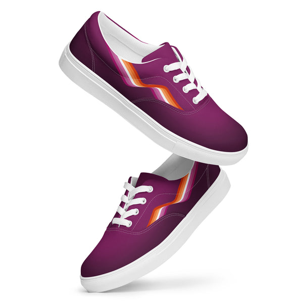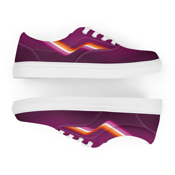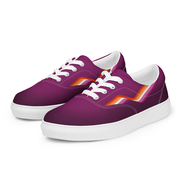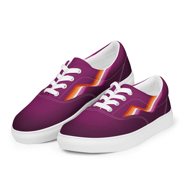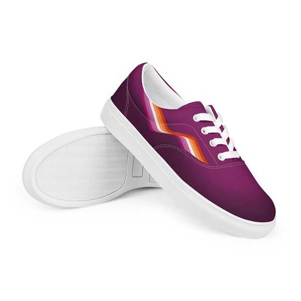 Show your pride with these Violet Fade Lesbian Pride Lace-Up Shoes, featuring a striking light-to-dark gradient and wavy ribbons in bold lesbian flag colors. Designed for comfort and all-day wear, they’re perfect for making a powerful statement of love, equality, and identity while turning heads wherever you go.