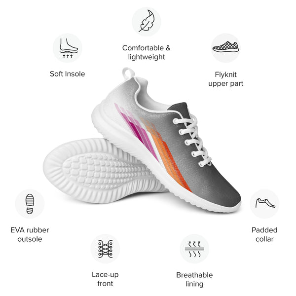 Show up and stand proud in our LGBTQ+ Women’s Pride Gray Athletic Shoes. Designed in sleek gray tones with subtle incorporations of the lesbian pride flag, these sneakers balance minimalist style with bold identity. Perfect for workouts or casual wear, they offer comfort, visibility, and purpose in every step.