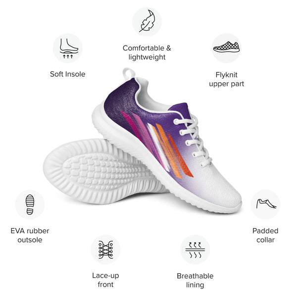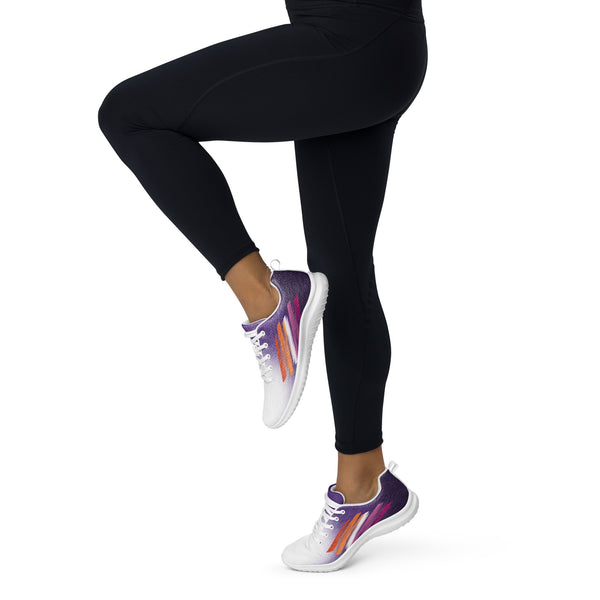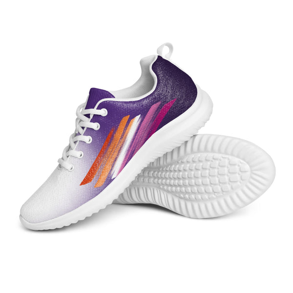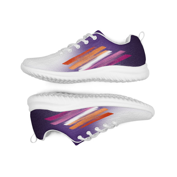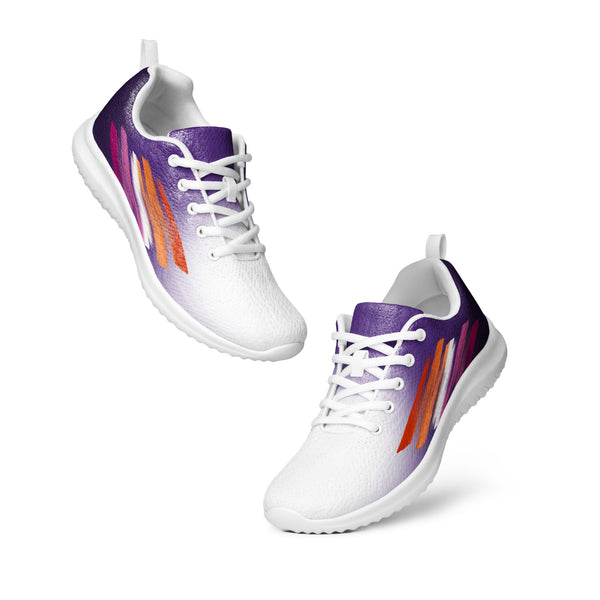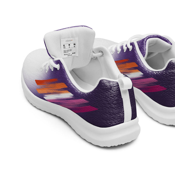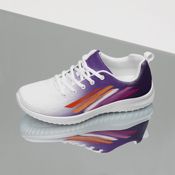 Step into confidence with our Women’s Pride Purple Athletic Shoes, showcasing a striking white to purple fade and vibrant accents inspired by the lesbian flag. These sneakers blend comfort, visibility, and purpose — perfect for everyday wear, workouts, or pride celebrations. Celebrate who you are and support the LGBTQ+ community with each bold and meaningful step.