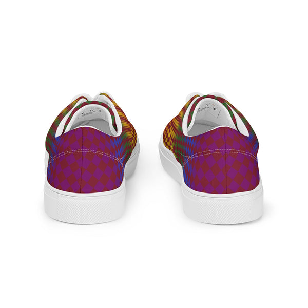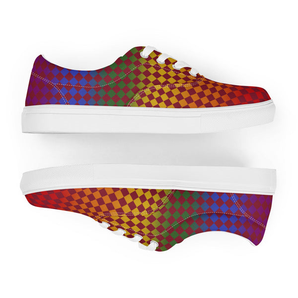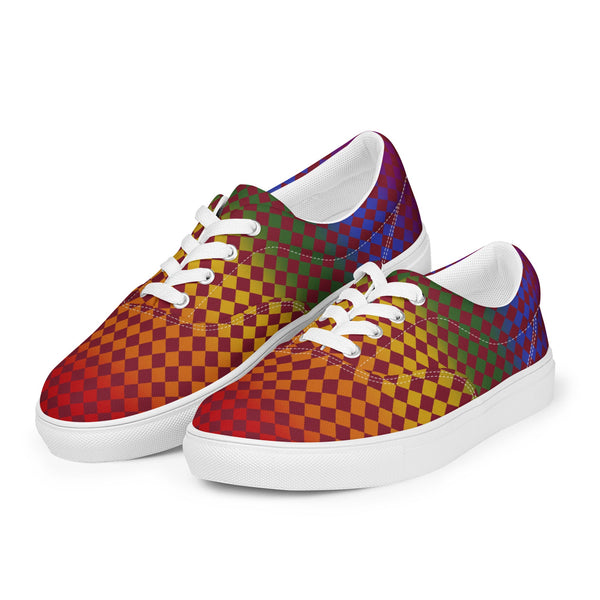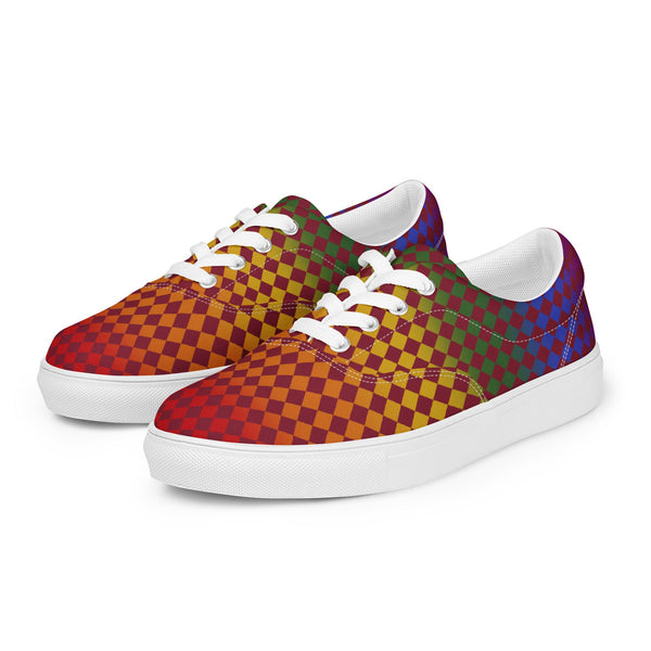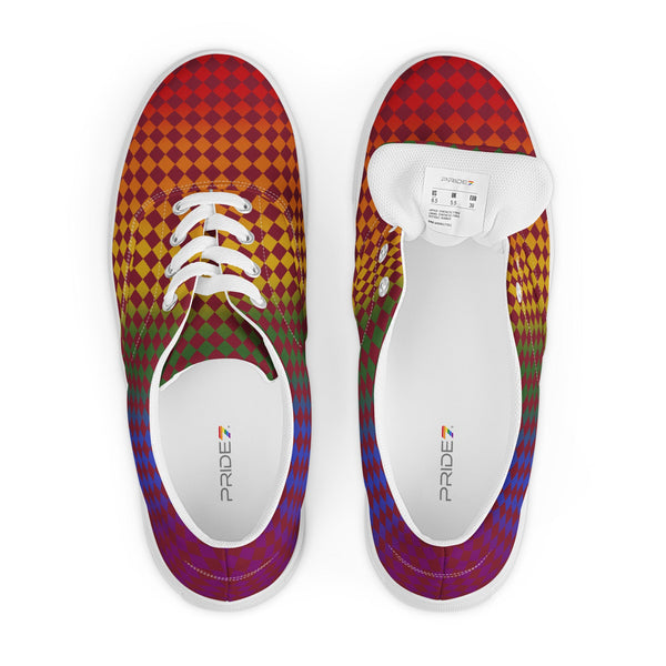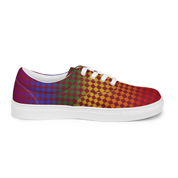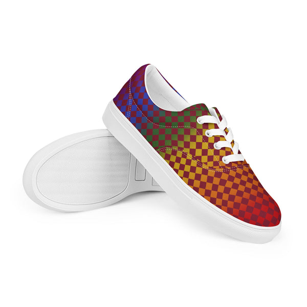 Celebrate love and equality with these bold LGBTQ+ Pride Shoes. Designed with a vibrant rainbow checkered pattern over a rich burgundy base, these lace-up shoes are a stylish tribute to identity and allyship. Whether you're part of the LGBTQ+ community or a proud supporter, these shoes let you walk with purpose and personality. Perfect for parades, casual wear, or making a subtle yet powerful statement every day.