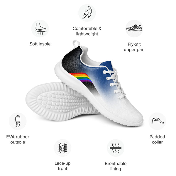 Spark joy and express your identity with these bold LGBTQ+ Pride Sneakers. Featuring sleek blue hues, a dark heel, and vibrant rainbow flag accents on the sides, these athletic shoes combine expressive design with everyday comfort.