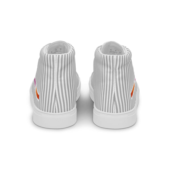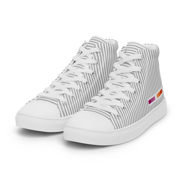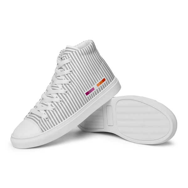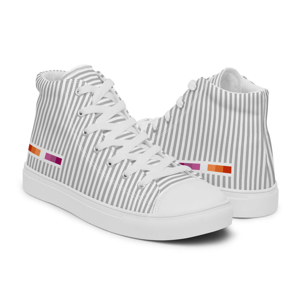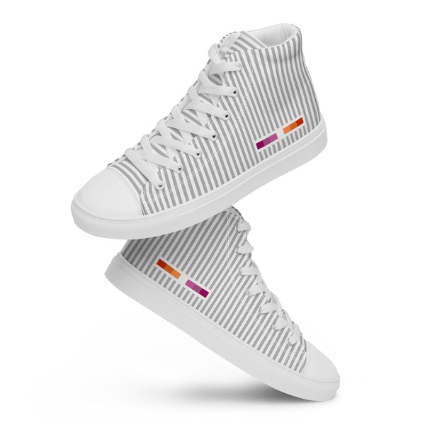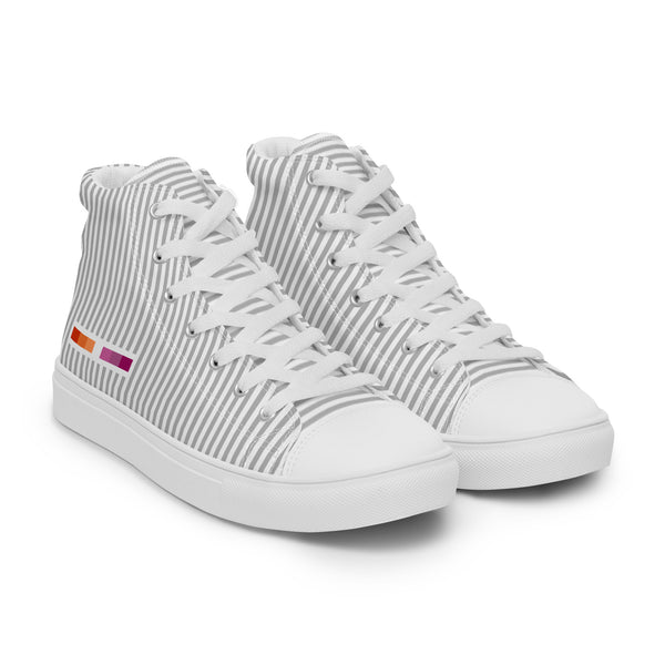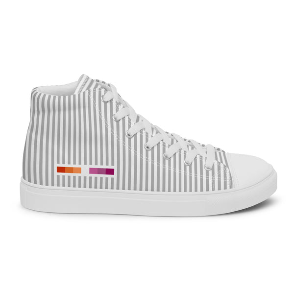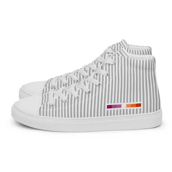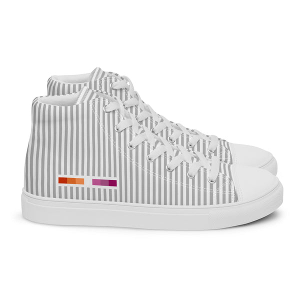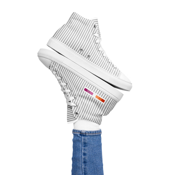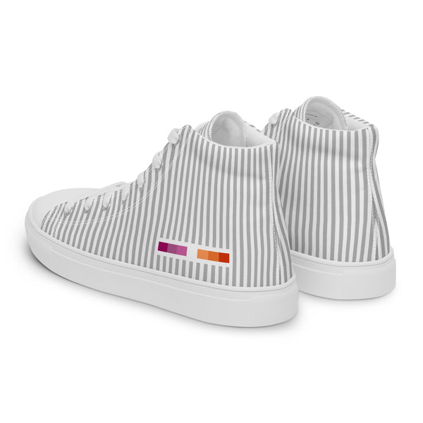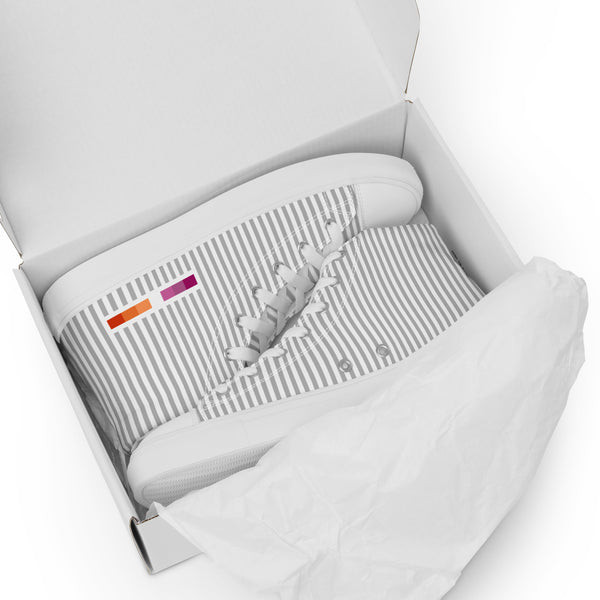 Elevate your shoe game with these Light Gray and White Pinstriped Lesbian High Tops, designed for those who want to stand out with subtle sophistication. The clean pinstripe pattern adds a modern twist, while the durable build and comfortable fit make them perfect for all-day wear. Stylish, versatile, and meaningful, they’re a must-have for showcasing pride with confidence.