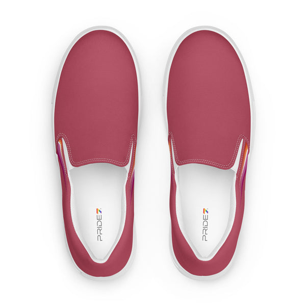 Step into pride with vibrant hippy pink slip-on shoes accented by the colors of the lesbian flag. Comfortable and stylish, they’re perfect for casual occasions while showing your support and love for the community. A must-have for any proud and passionate lesbian ready to walk with confidence.
