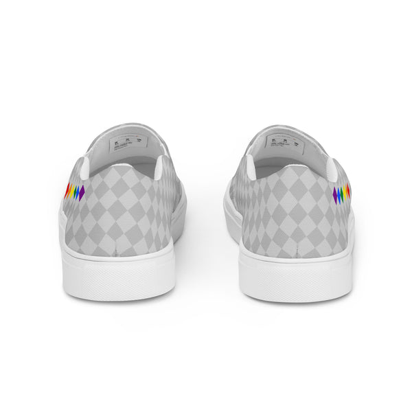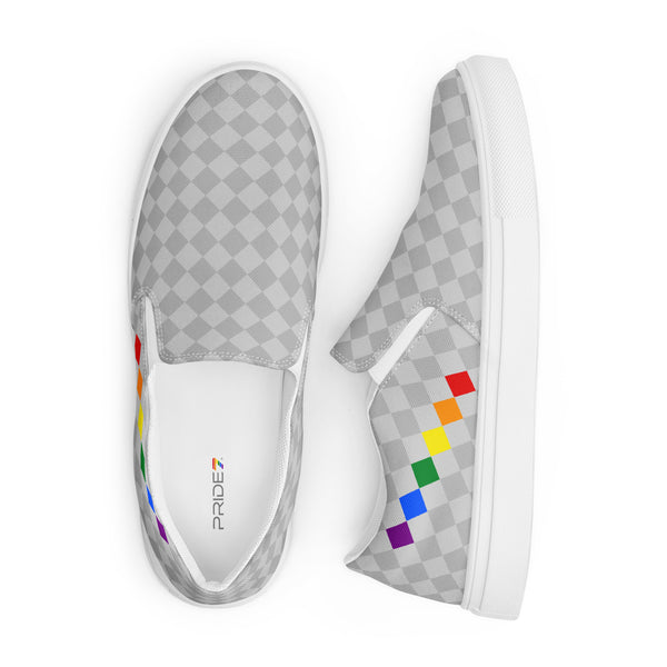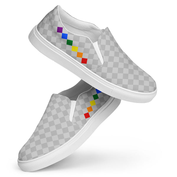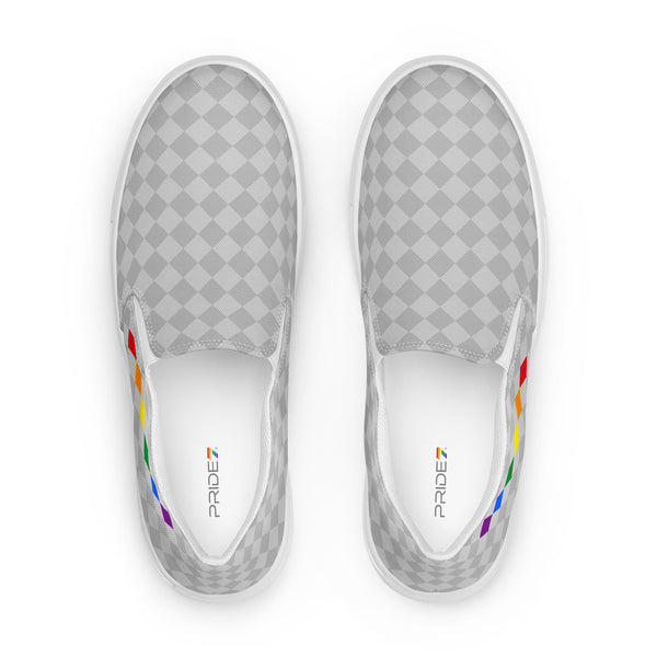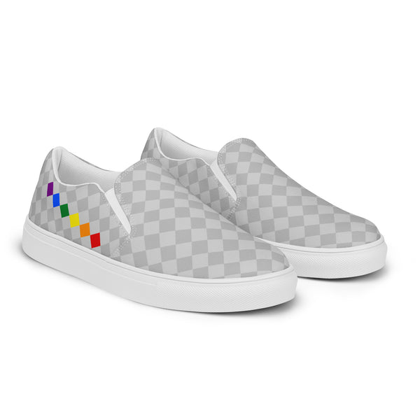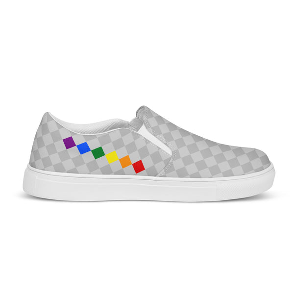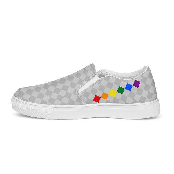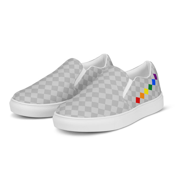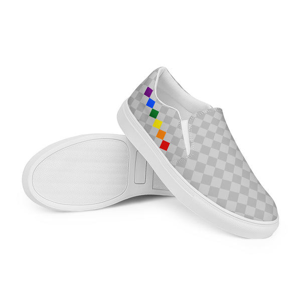 Step into bold style with these Silver Checkered Pride Shoes. Featuring a shimmering silver checkerboard pattern accented by vibrant rainbow squares, these shoes balance trend-forward design with all-day comfort. A perfect pick for expressing LGBTQ+ pride through elevated, everyday fashion.