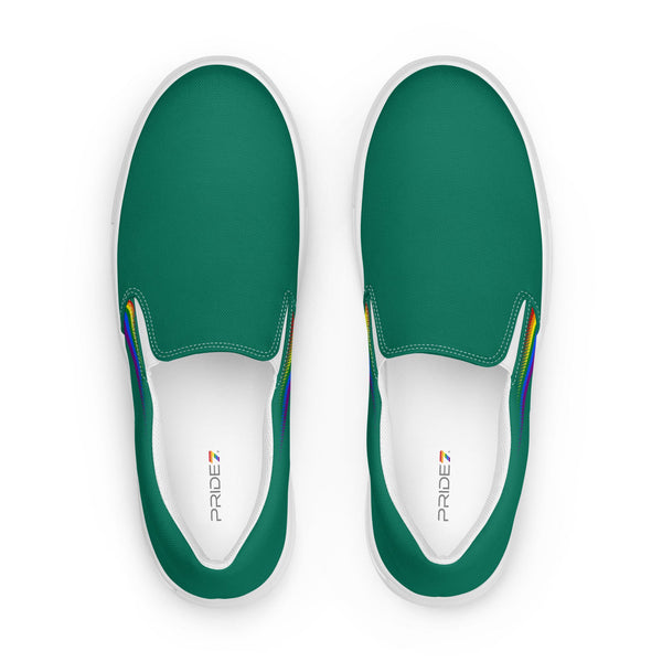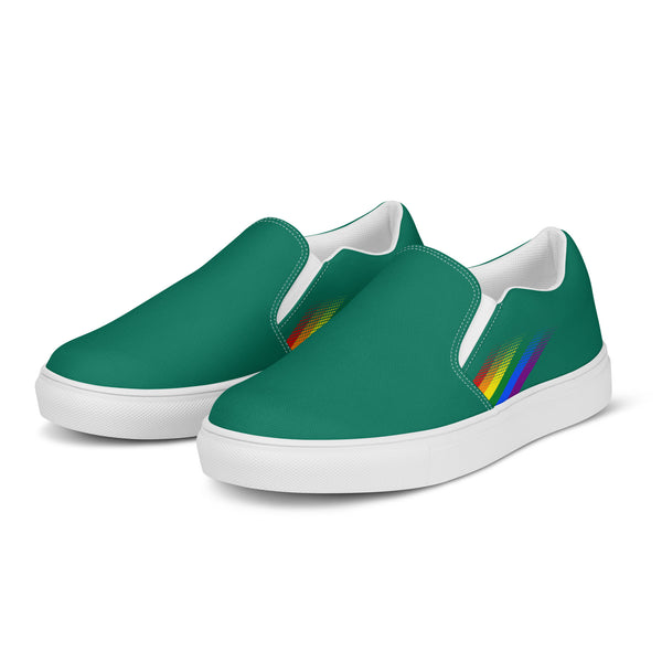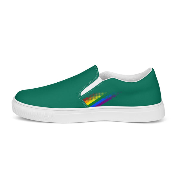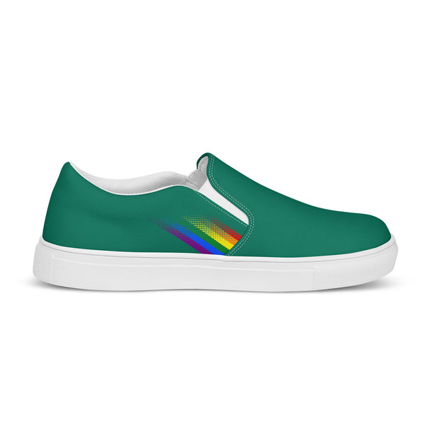 Crafted with a bold solid green canvas and subtle faded rainbow flag accents, these slip-on shoes blend pride with minimalism. Perfect for those who favor a quiet yet confident expression of LGBTQ+ identity, they offer all-day comfort with a pop of purpose. Their clean design and vibrant color make them ideal for everyday wear with meaning.