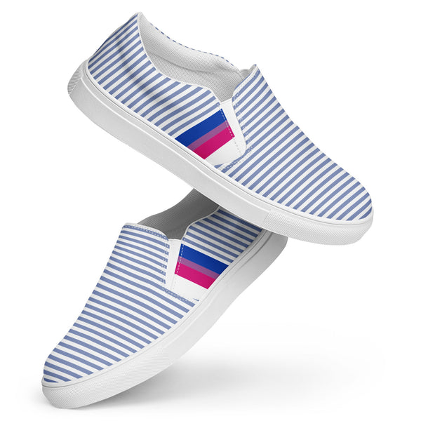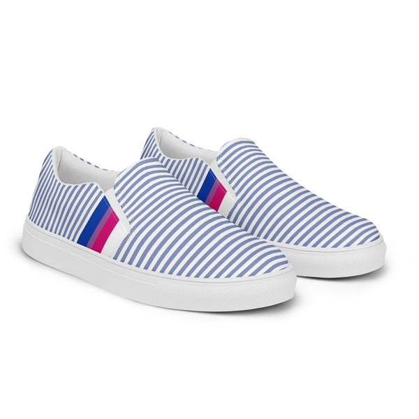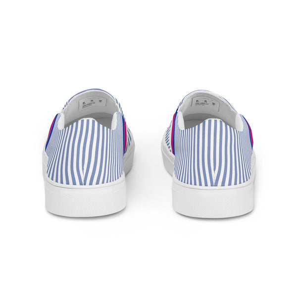 Embrace your pride with these stylish blue and white pinstriped shoes, featuring vibrant bisexual flag accents along the sides. Designed for comfort, visibility, and everyday wear, they make a bold yet refined statement. Walk with purpose, support equality, and add pride-driven flair to your look with every step.