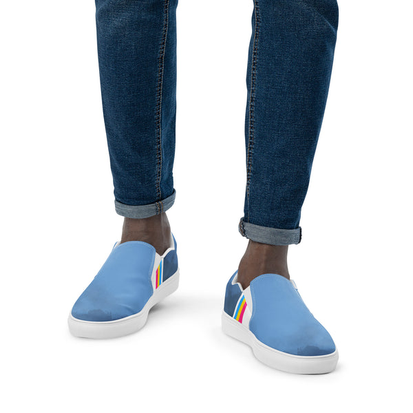 Step into everyday ease with these Subtle Pansexual Pride Slip-Ons for men. Featuring soft blue canvas and understated flag accents, they offer a sleek, meaningful way to express identity. With cushioned insoles, durable rubber outsoles, and a slip-on design, they deliver comfort and pride in every step without compromising style.
