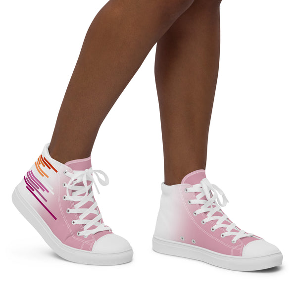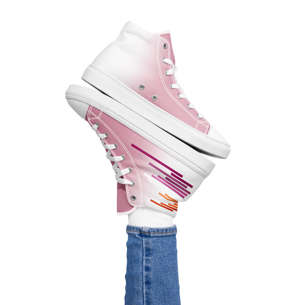 Show your pride from the ground up with these Pink to White Fade Lesbian Shoes, accented by thin stripes in the iconic colors of the lesbian pride flag. Perfect for those who love a subtle yet meaningful design, these shoes pair comfort with style, making them ideal for everyday wear. Walk with confidence and let your footwear make a quiet but powerful statement.