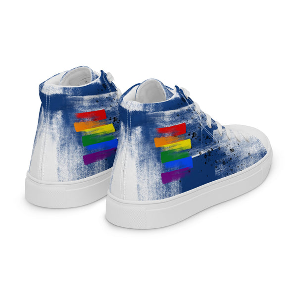 Express individuality with these blue and white high top sneakers featuring bold rainbow brushstroke accents. Designed for comfort and visual impact, these artistic shoes celebrate LGBTQ+ identity with every step. Ideal for casual outings or festivals, they bring a colorful flair to everyday wear with unique, handcrafted-style detailing.
