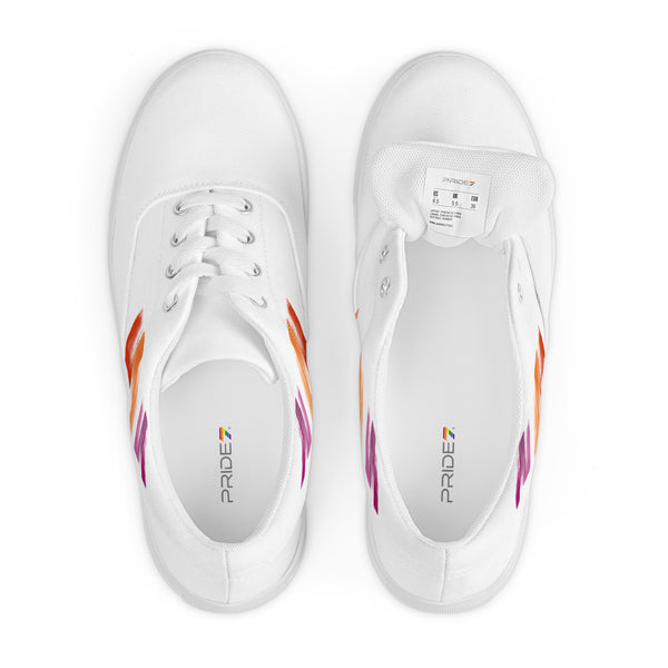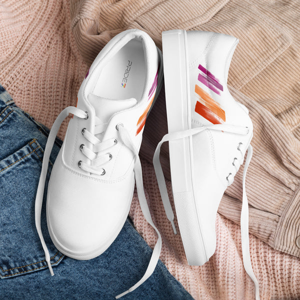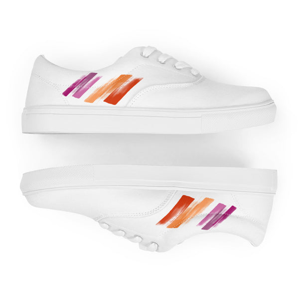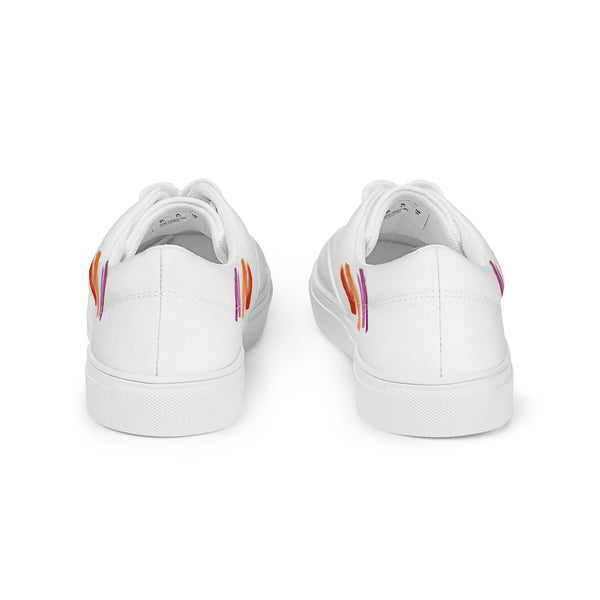 Step out in style with these White Lesbian Flag Lace-Up Shoes, featuring playful squiggly brush strokes in the bold colors of the lesbian pride flag. Comfortable and eye-catching, they’re perfect for showing pride, making a statement, and adding a fun graphic touch to any outfit.