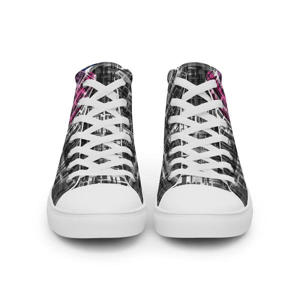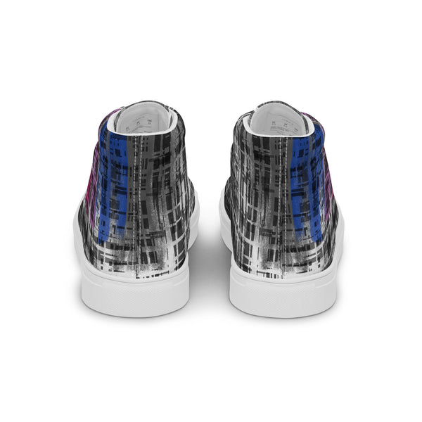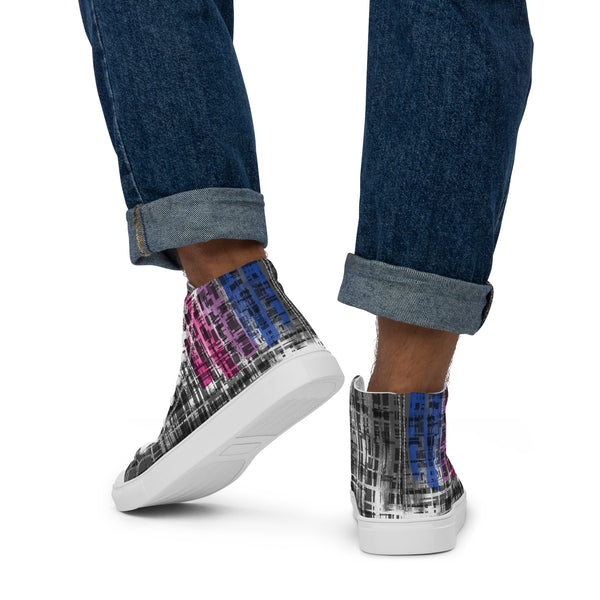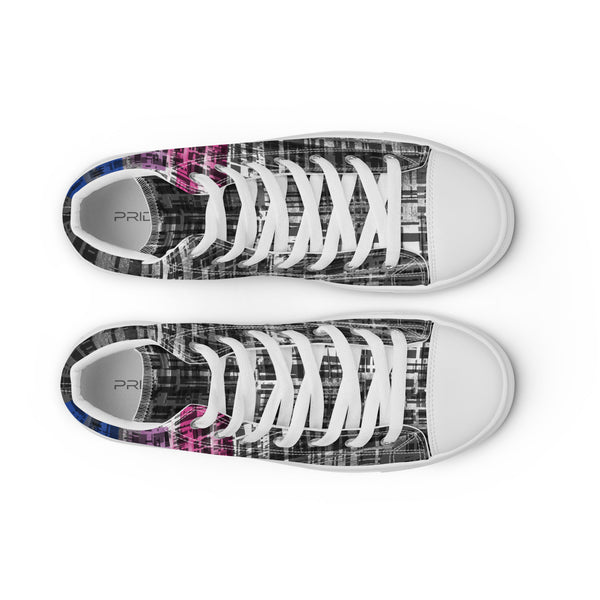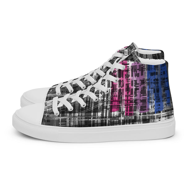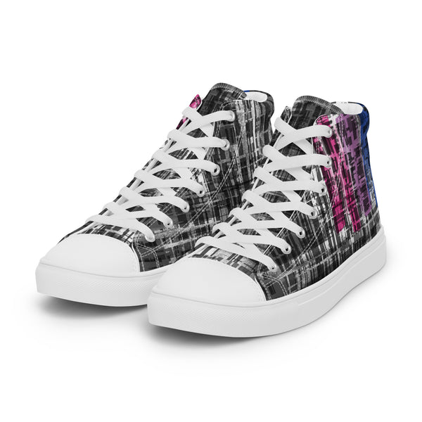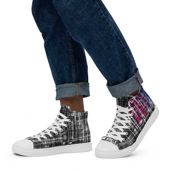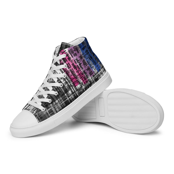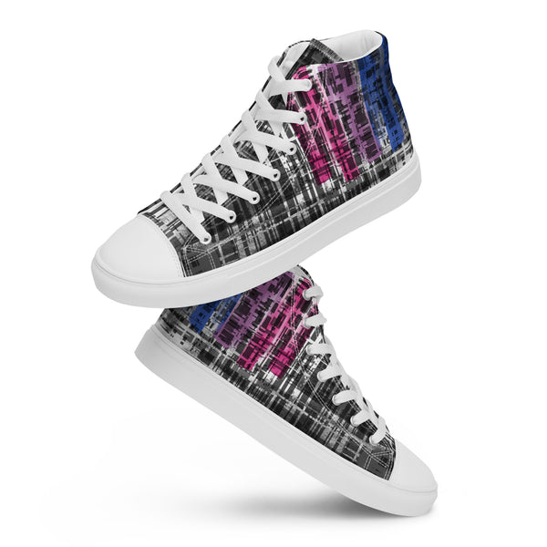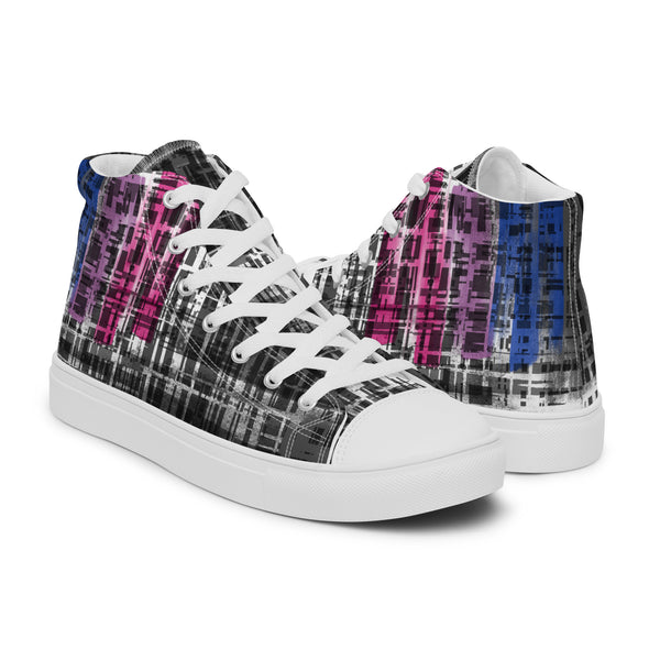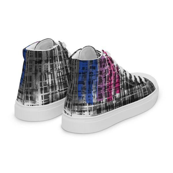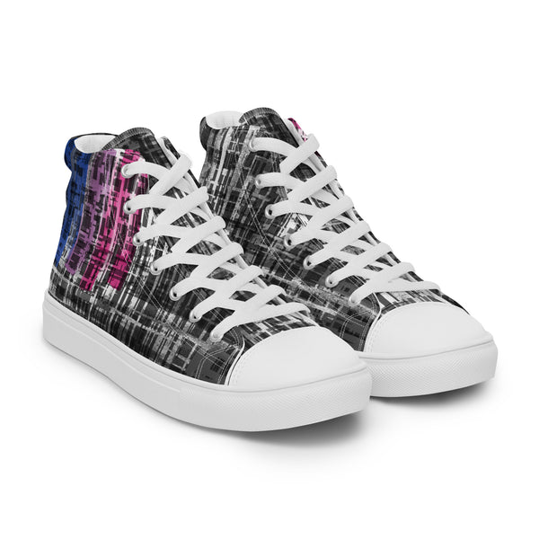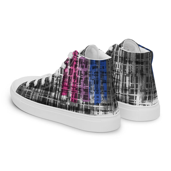 Experience comfort and confidence with these urban-inspired black and white high tops, featuring vibrant bisexual pride flag accents. Designed for everyday wear, these shoes blend street-style edge with powerful identity expression. Whether you're layering up for winter or making a year-round statement, step out in bold pride and effortless style.