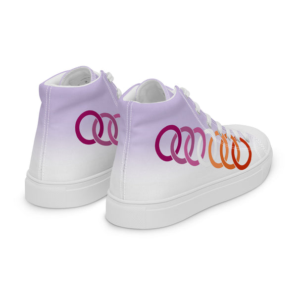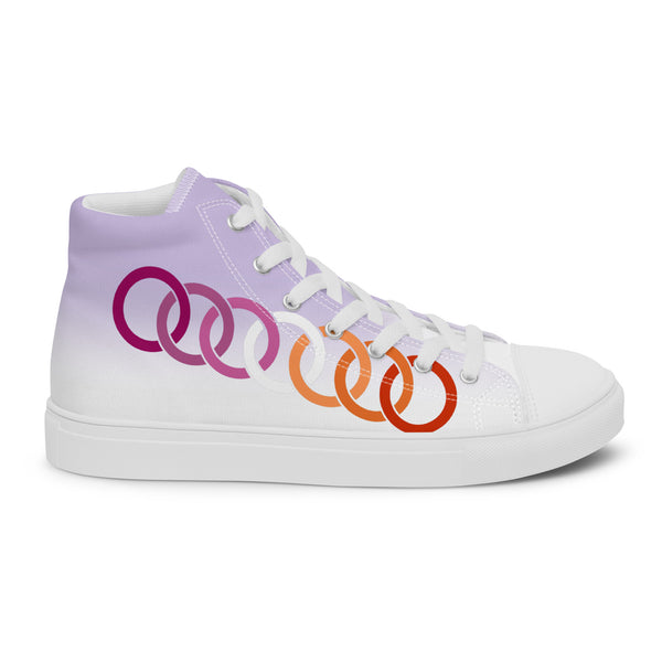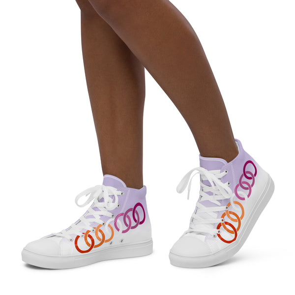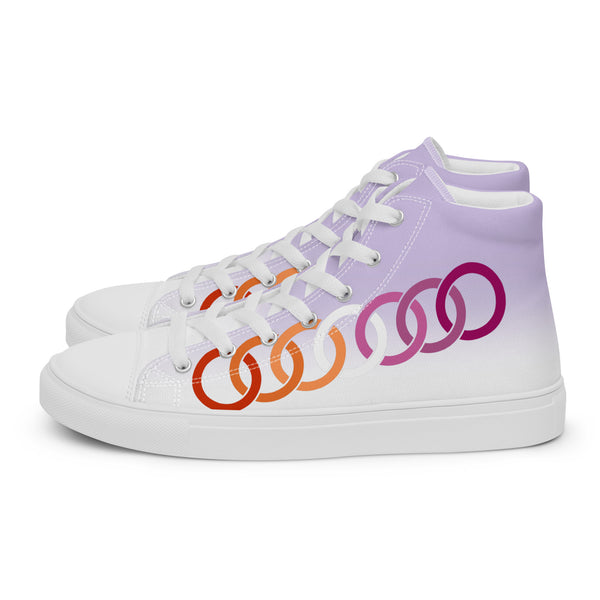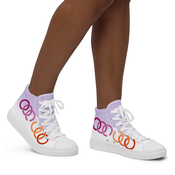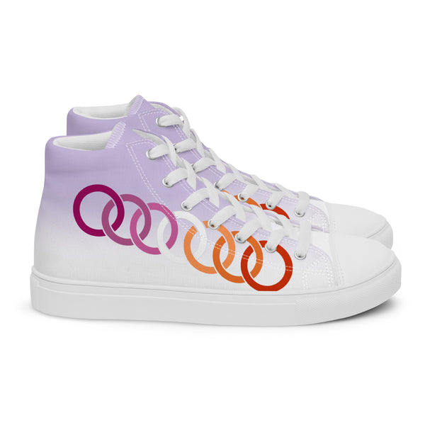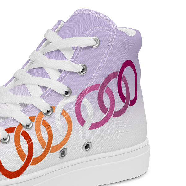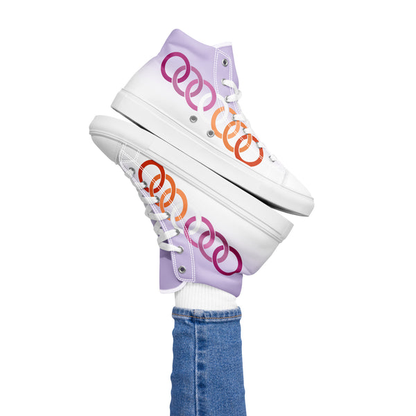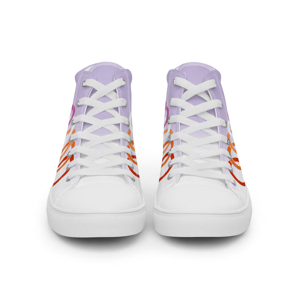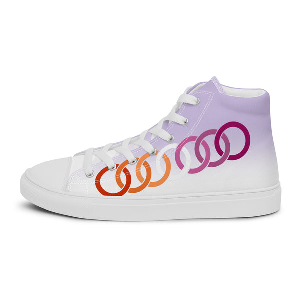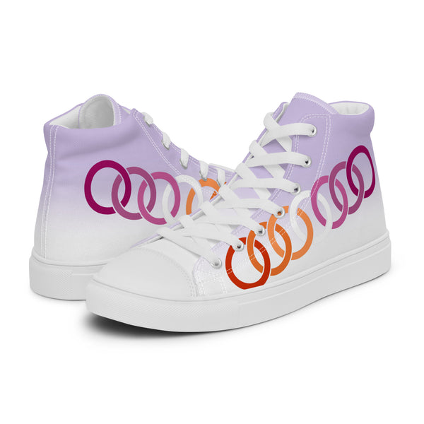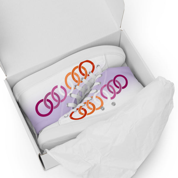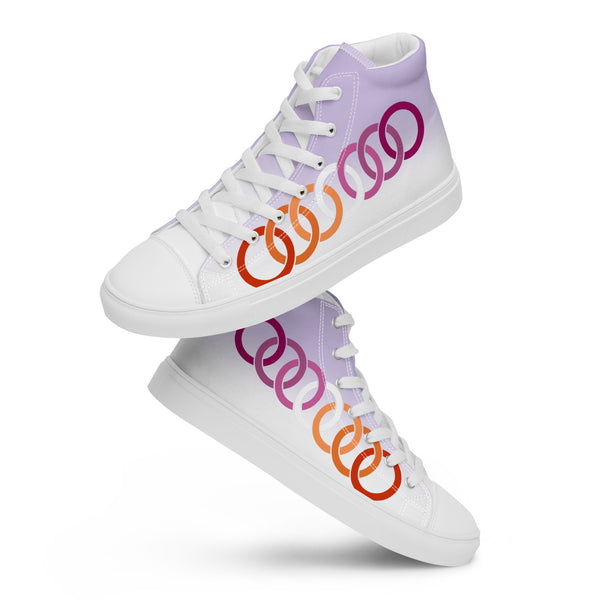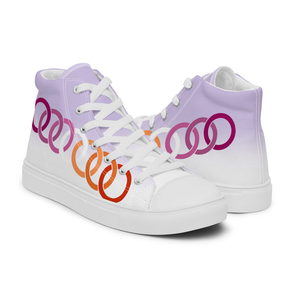 Step up your casual style with these Women’s Casual High Tops, designed with a smooth white-to-purple fade and interlocked circles in lesbian flag colors. These sneakers blend comfort and personality, making them ideal for everyday wear while showing off your pride. Whether you’re out with friends or running errands, these high tops are a fun and stylish way to walk with confidence.