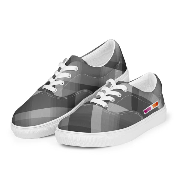 Gray Plaid Pattern Lesbian Pride Lace-Up Shoes